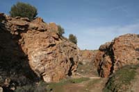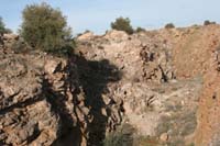 Descloizita. Mina del Caballo (o del Polvorín). Madridejos (Toledo). La descloizita también se encuentra fácilmente en la mina del Caballo, próxima a la mina Perdiguera, con composición y hábito similar al de esta. |