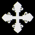 blanca con la Cruz de Malta en el lado izquierdo en color morado y