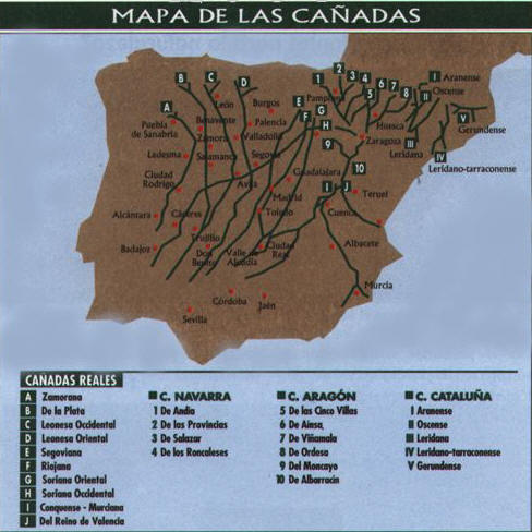 Las vías pecuarias han representado durante siglos, tanto para la economía del pais (el comercio del vellón era de tal magnitud que en 1462 se prohibió la exportación de mas de las dos terceras partes de la lana esquilada cada año) como para sus comunicaciones (prácticamente eran las autopistas de la época), un soporte cultural muy importante. A través de las cuales circulaban ganado, costumbres y tradiciones por todo el pais. Actualmente se encuentran en fase de reestructuración y adecuación a las necesidades ganaderas, que se amplían dentro de la nueva ley de 23 de marzo de 1995 a acciones medioambientales y de disfrute de la Naturaleza. Las vías pecuarias se establecieron como tales durante la Edad Media y probablemente se generaron sobre rutas que ya existían desde épocas prehistóricas (Jesús Garzón, secretario general del Proyecto 2001, dice que la trashumancia comenzó hace 15.000 años, allá por el Paleolítico). En el entorno del Mediterráneo, Italia y Grecia comparten un esquema similar de migraciones ganaderas intranacional. |