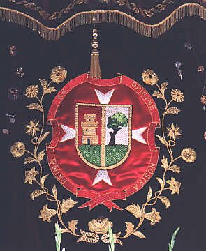 El escudo data de la época en que se consiguió el privilegio de villazgo. De forma ovalada de boca española, partido, abrazado por la cruz de Malta. A la siniestra, de gules una torre de oro donjonada de un homenaje y tres cuerpos, en campo arado. A la diestra, de azur un moral, también en campo arado. Todo ello envuelto, en la leyenda “PRIMA AB ORIGENE NOSTRA” como recuerdo de ser la primera población desamortizada del Gran Priorato de la orden Militar Hospitalaria de San Juan de Jerusalem. El fondo del escudo es añadido actual para equipararse al color de la bandera, que fue aprobada por Pleno el día 26 de diciembre de 1990. El color morado del fondo de la bandera recuerda los caracteres heráldicos medievales, puesto que el origen de la localidad, se remonta a dicha época, y el dorado del encaje a lo seco del paisaje, llano y los cultivos de secano, que representa la agricultura de la zona.