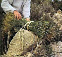mejores piezas. Los espartos recolectados se agrupan y atan en pequeños