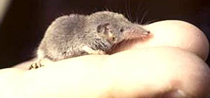 Se trata, sin duda alguna, del mamífero más pequeño de toda Europa, siendo su reducidísimo tamaño, por tanto, la característica más notoria a la hora de identificarle. Destacan su hocico alargado con abundantes pelos táctiles, sus ojos diminutos, orejas bien desarrolladas con unos característicos pliegues, extremidades cortas, y su cola, de la mitad de longitud aproximadamente que cabeza y cuerpo juntos. La coloración del dorso es grisácea difuminándose por los costados hasta alcanzar tonalidades más claras en la región ventral. Habita preferentemente en los bosques de encinas y alcornoques, prados, márgenes de cultivos, granjas y jardines. Su actividad crepuscular y nocturna, unida a sus menudas dimensiones y recatadas costumbres, hacen de la musarañita una de las especies de nuestra fauna más desconocida. Desarrolla, no obstante, una intensa actividad debido a su acelerado metabolismo, que la obliga a buscar continuamente alimento. Su descomedida agresividad queda patente en el momento que es capaz de enfrentarse y dar muerte en muchas ocasiones a presas que la superan en tamaño y peso. Se alimenta de variedad de invertebrados como arañas, miriápodos (ciempiés, milpiés). coleópteros (escarabajos), ortópteros (saltamontes, grillos), mantis religiosas. etc., llegando también a consumir crías de pequeños vertebrados (ratones), lagartijas y lagartos jóvenes. Se refugia bajo troncos caídos o entre las grietas de los muros de piedra que se encuentran en las lindes de los caminos, construyendo también su nido entre los matorrales a base de vegetación herbácea. Su ciclo reproductivo es muy similar al de la musaraña común, llegando a tener varios partos a lo largo del periodo comprendido entre el principio de la primavera y el otoño. El n£mero de crías por camada oscila entre cuatro y seis, alcanzando éstas a las tres semanas de vida aproximadamente el tamaño y aspecto de sus progenitores. |